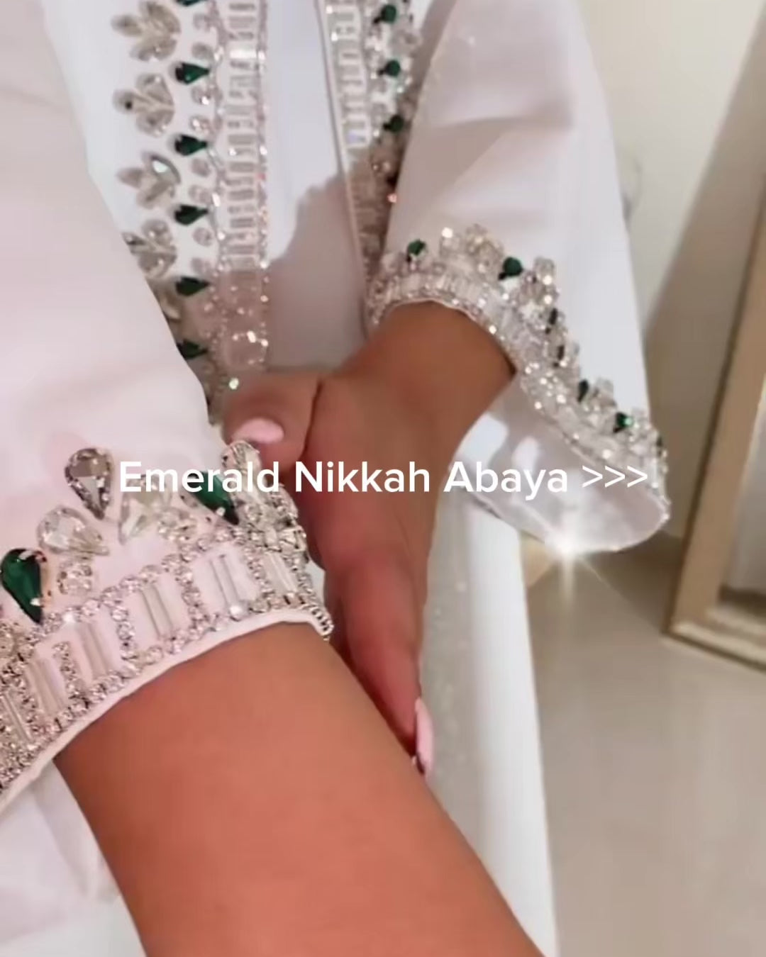 White & Emerald Nikkah Abaya