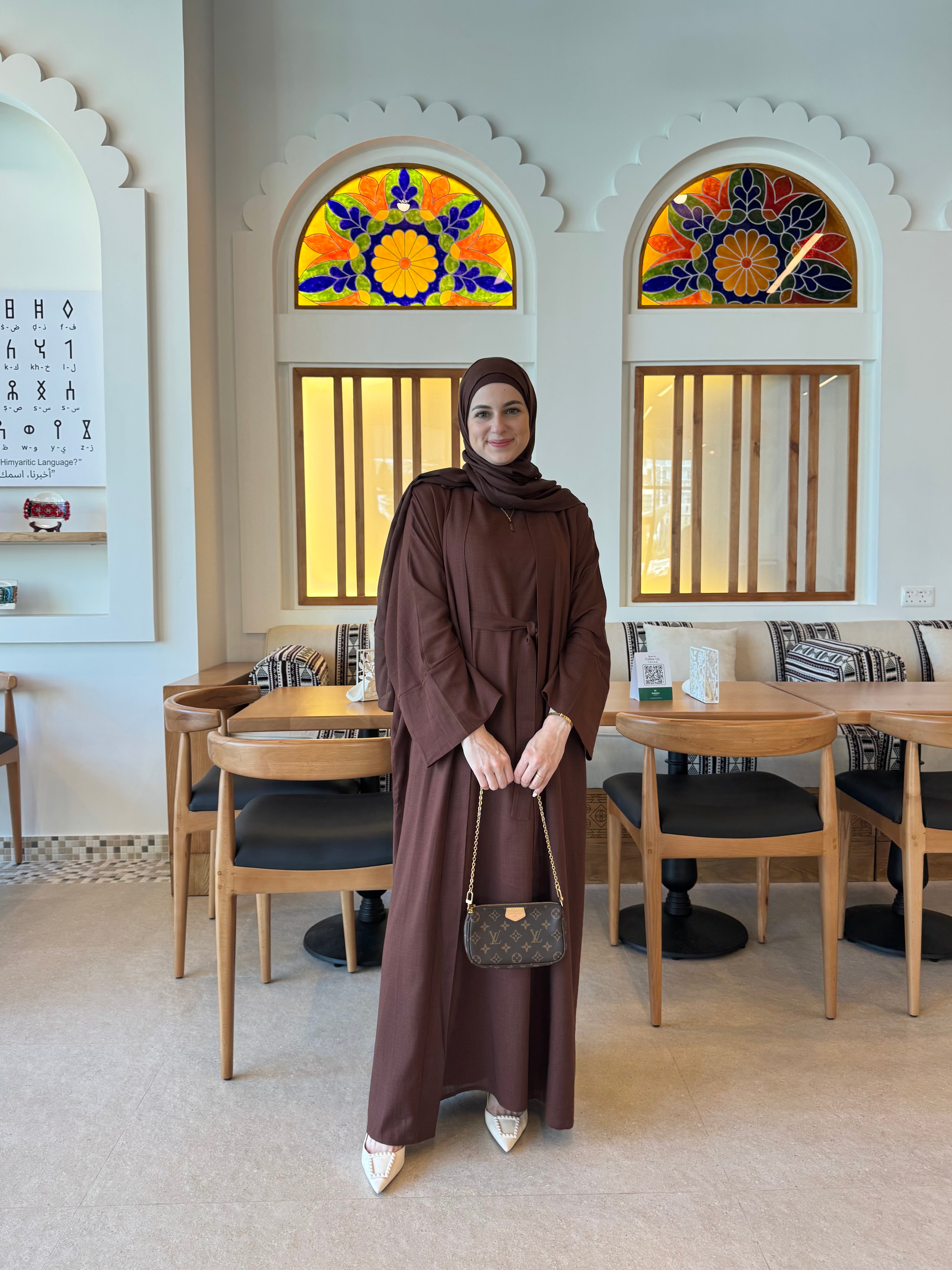 Aya Linen Abaya - Coffee